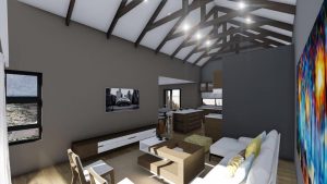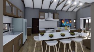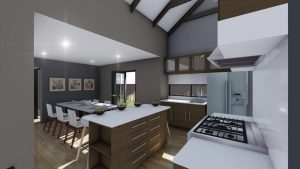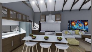 • Oopplan sitkamer, eetkamer en kombuis.